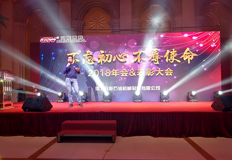 我們總經理,周鵬先先生在年會致辭中說:“我們創(chuàng)立冠能固控的初心就是創(chuàng)造一個世界較好的品牌。經過10年的發(fā)展,我們的品質和品牌知名度已經逐步獲得廣大客戶的認可。在國內市場,我們已經與國內三桶油有了深入合作,也是國內各大鉆機廠優(yōu)選配套供應商。在國際市場,我們已經遠銷世界多個國家和地區(qū),獲得了包括貝克休斯,埃及國家泥服,俄石油,美國客戶等的高度認可。在過去的2017年,宏觀市場并不好的情況下,冠能公司業(yè)績獲得了20%的增長。回 初心,我們不辱使命。當然,我們既要為自己取得的成績自豪,更要面向未來。為適應未來的發(fā)展需要,公司已經在唐山玉田新購買120畝土地,用于新工廠的建設。在新工廠,我們要打造智能化制造工廠,包括引進機器人,工業(yè)物聯(lián)網技術,MES現(xiàn)場生產管理系統(tǒng)。通過先進的制造技術,去確保產品品質,提高生產效率。為創(chuàng)建名族品牌貢獻一份力量。”