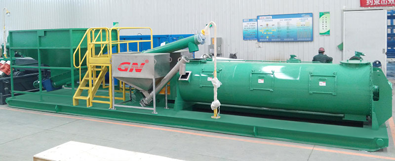 1、鉆屑儲料漏斗接收待處理的鉆屑和泥漿廢棄物,通過螺旋送料機按照預先設定的輸送量輸送到固化攪拌機中去。